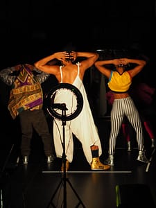 This Is a Formation is the latest dance performance project in jumatatu m. poe and Jermone Donte Beacham’s Let ‘im Move You series, a collection of performance and visual works centered around the artists’ explorations with the J-Sette form. Formation brings together 7 Black dancers, a DJ, and a lighting designer as performers for the work. Audiences travel within the performance space with relative freedom, sharing the same spaces as performers. Live captured video design elements will focus on close-up capture of the performers for display on hanging panels throughout the space, referencing both hyper-surveillance of Black people’s bodies, and pop-star scale megalomania.